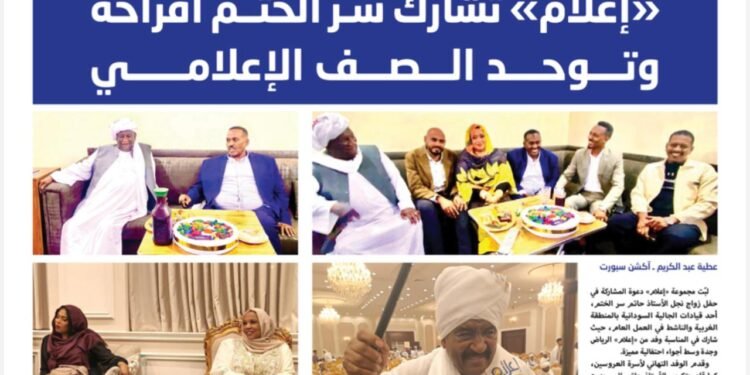 لبّت مجموعة «إعلام» دعوة المشاركة في حفل زواج نجل الأستاذ حاتم سر الختم، أحد قيادات الجالية السودانية بالمنطقة الغربية والناشط في العمل العام، حيث شارك في المناسبة وفد من «إعلام» الرياض وجدة وسط أجواء احتفالية مميزة.