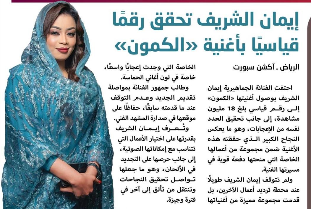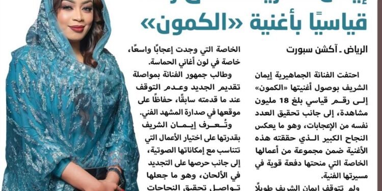 احتفت الفنانة الجماهيرية إيمان الشريف بوصول أغنيتها «الكمون» إلى رقم قياسي بلغ 18 مليون مشاهدة، إلى جانب تحقيق العدد نفسه من الإعجابات، وهو ما يعكس النجاح الكبير الذي حققته هذه الأغنية ضمن مجموعة من أعمالها الخاصة التي منحتها دفعة قوية في مسيرتها الفنية.