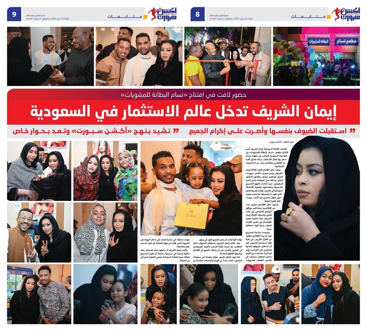 وعقب حفل الافتتاح التقت الفنانة إيمان الشريف رئيس تحرير «آكشن سبورت» الزميل إبراهيم عوض بحضور الدكتور شاذلي عبدالله مدير الحوكمة بنادي النصر السعودي، حيث أشادت بالنهج التحريري للصحيفة واهتمامها بتغطية الأنشطة السودانية في الخارج، مؤكدة تقديرها للدور الذي تقوم به الصحيفة. كما وعدت بإجراء حوار مطوّل وحصري مع «آكشن سبورت» خلال الفترة المقبلة.