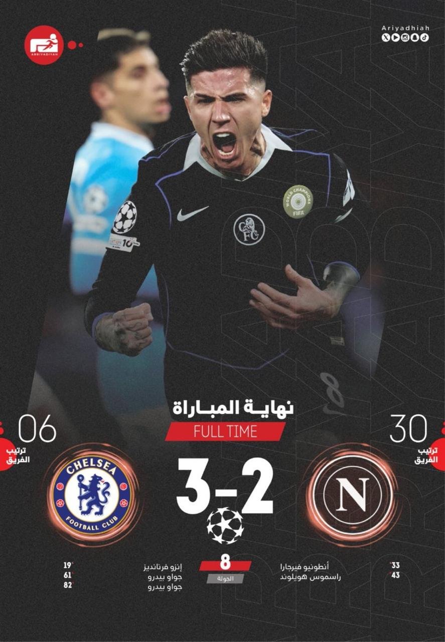 وبهذا الفوز، رفع تشيلسي رصيده إلى 16 نقطة ليحتل المركز السادس في جدول الترتيب، ويضمن التأهل المباشر إلى دور ثمن النهائي من دوري أبطال أوروبا، في المقابل تجمّد رصيد نابولي عند 8 نقاط في المركز الثلاثين، ليودّع البطولة رسميًا.