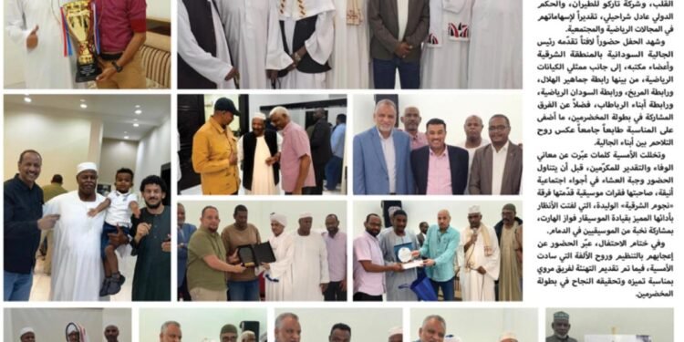 وشهد الحفل حضوراً لافتاً تقدّمه رئيس الجالية السودانية بالمنطقة الشرقية وأعضاء مكتبه، إلى جانب ممثلي الكيانات الرياضية، من بينها رابطة جماهير الهلال، ورابطة المريخ، ورابطة السودان الرياضية، ورابطة أبناء الرباطاب، فضلاً عن الفرق المشاركة في بطولة المخضرمين، ما أضفى على المناسبة طابعاً جامعاً عكس روح التلاحم بين أبناء الجالية.
