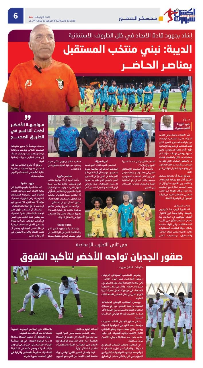 وأشاد الديبة بالمجهود الكبير الذي بذله الاتحاد السوداني لكرة القدم في توفير معسكر إعدادي متكامل بمدينة جدة، موضحاً أن جميع مقومات المعسكر المثالي توفرت، من إقامة مريحة وملاعب مميزة وصالات حديثة، إلى جانب تنظيم مباريات إعدادية قوية.