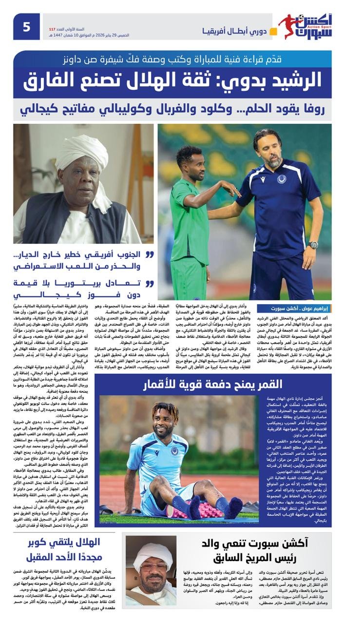 وعلى الصعيد الفني، شدد بدوي على ضرورة لعب الهلال بحذر محسوب، والوصول إلى مرمى الخصم بأقصر الطرق، والابتعاد عن اللعب المظهري والتمريرات العرضية غير المجدية، مع استغلال أنصاف الفرص. وأوضح أن وجود محمد عبد الرحمن، وجان كلود كوليبالي، وعبد الرؤوف، يمنح الهلال حلولًا هجومية قادرة على اختراق دفاع صن داونز، الذي وصفه بأضعف خطوط الفريق المنافس.