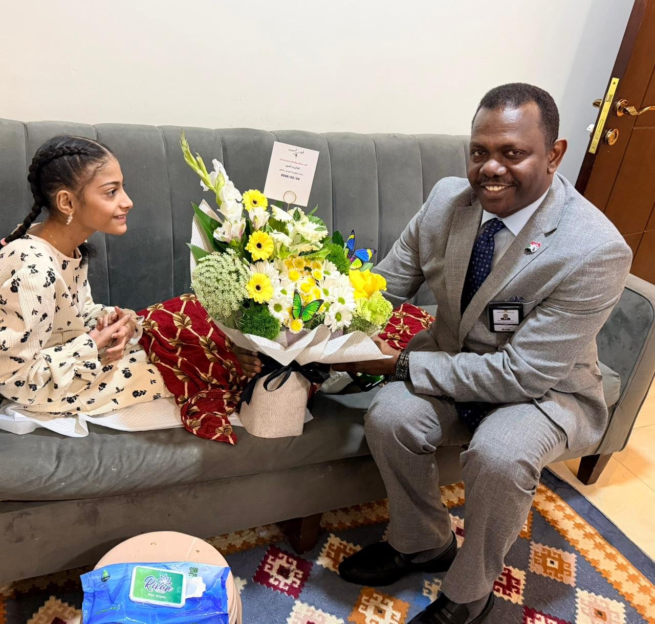 زار وفدٌ قنصلي الطفلةَ العنود عبدالله الطريفي بمنطقة القصيم، للاطمئنان على حالتها الصحية واستكمال إجراءات تجديد جوازها الإلكتروني، وذلك بتوجيهات مباشرة من سعادة السفير، في إطار تواصل سفارة جمهورية السودان بالرياض واهتمامها بالمواطنة الصغيرة.