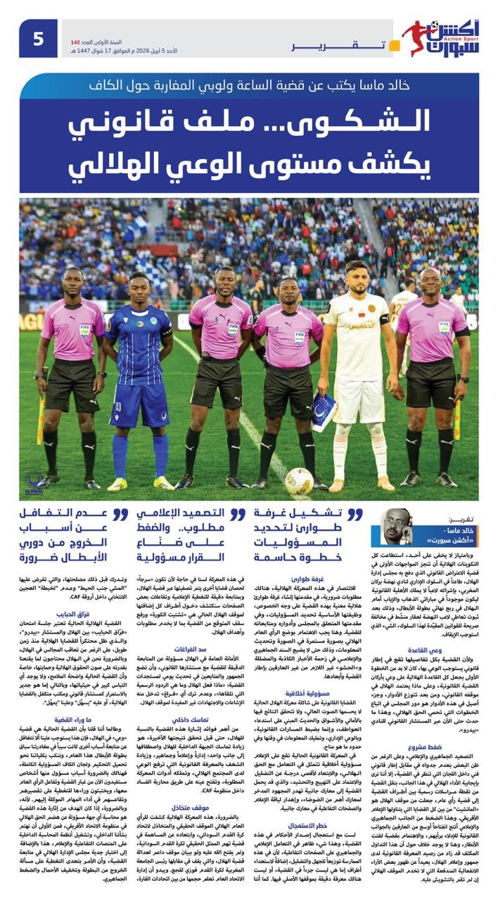 الأمانة العامة في الهلال مسؤولة عن المتابعة الدقيقة للقضية مع مستشارها القانوني، وأن تضع الجمهور والمتابعين في تحديث يومي لمستجدات القضية: “ماذا فعل الهلال وما هي الردود الرسمية التي تلقاها”، وعدم ترك أي “فراغ” تدخل منه الإشاعات والاجتهادات غير المفيدة لموقف الهلال.