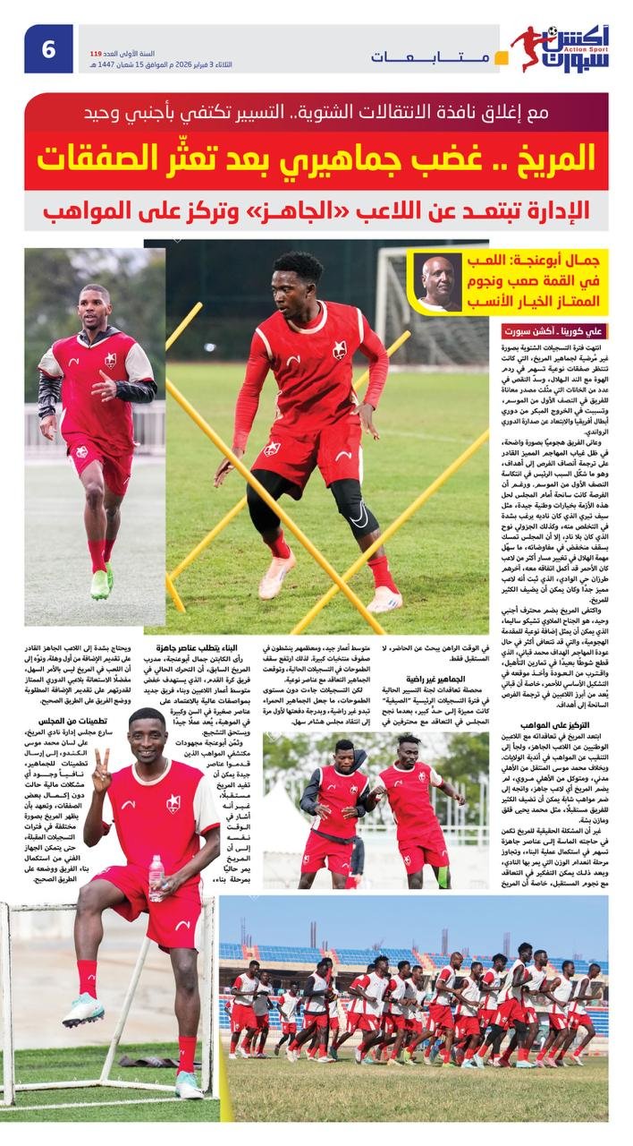 غير أن المشكلة الحقيقية للمريخ تكمن في حاجته الماسة إلى عناصر جاهزة تسهم في استكمال عملية البناء، وتجاوز مرحلة انعدام الوزن التي يمر بها النادي، وبعد ذلك يمكن التفكير في التعاقد مع نجوم المستقبل، خاصة أن المريخ في الوقت الراهن يبحث عن الحاضر، لا المستقبل فقط.