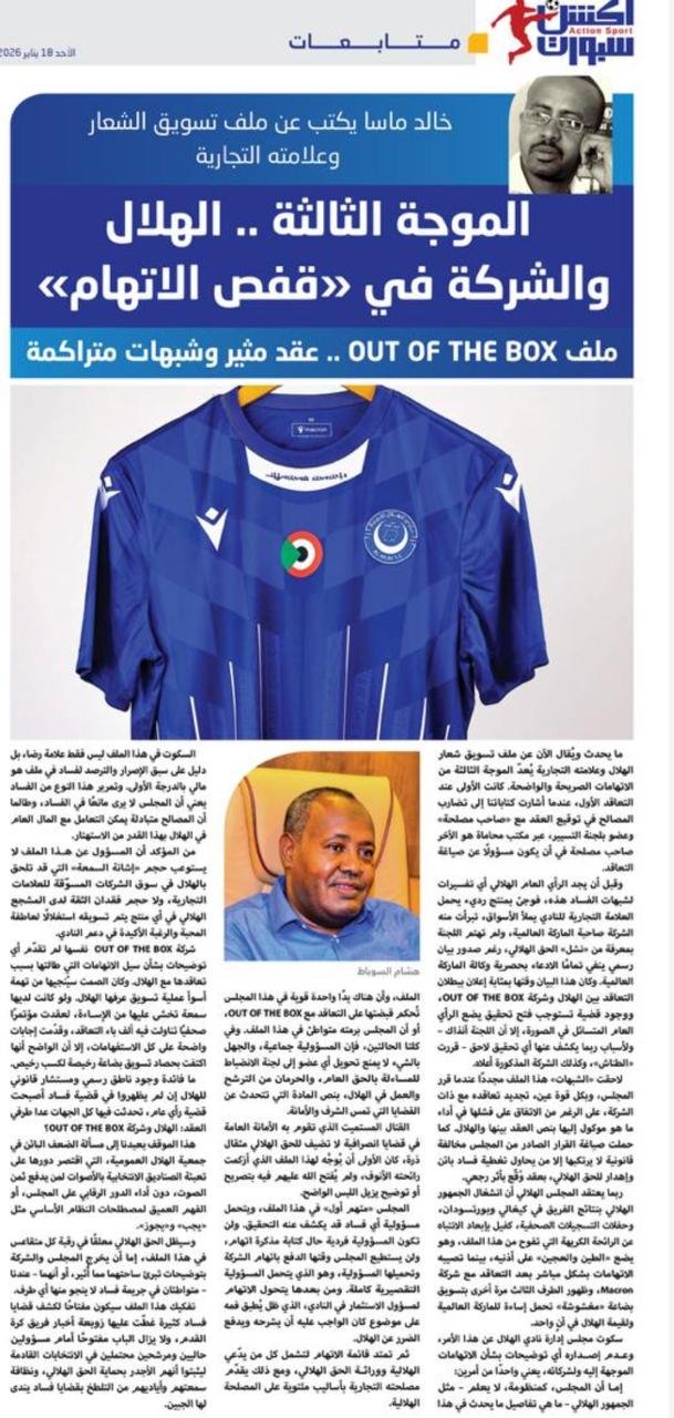 ربما يعتقد المجلس الهلالي أن انشغال الجمهور الهلالي بنتائج الفريق في كيغالي وبورتسودان، وحفلات التسجيلات الصحفية، كفيل بإبعاد الانتباه عن الرائحة الكريهة التي تفوح من هذا الملف، وهو يضع «الطين والعجين» على أذنيه، بينما تصيبه الاتهامات بشكل مباشر بعد التعاقد مع شركة Macron، وظهور الطرف الثالث مرة أخرى بتسويق بضاعة «مغشوشة» تحمل إساءة للماركة العالمية ولقيمة الهلال في آنٍ واحد.