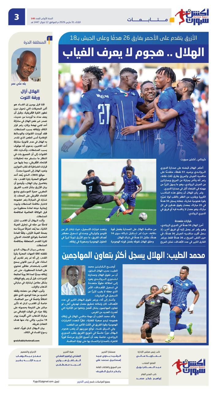 الأزرق يتقدم على الأحمر بفارق 26 هدفًا وعلى الجيش بـ18