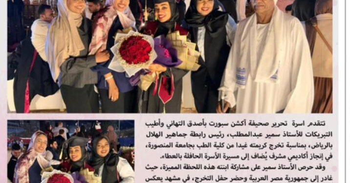 وقد حرص الأستاذ سمير على مشاركة ابنته هذه اللحظة المميزة، حيث غادر إلى جمهورية مصر العربية وحضر حفل التخرج، في مشهد يعكس عمق الفخر والاعتزاز بهذا الإنجاز الكبير.