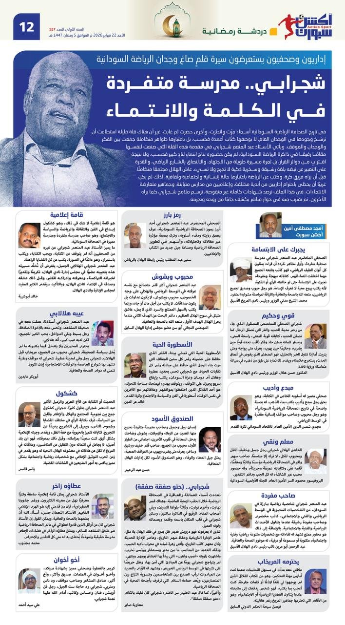 في تاريخ الصحافة الرياضية السودانية أسماء مرّت واندثرت، وأخرى حضرت ثم غابت، غير أن هناك قلة قليلة استطاعت أن ترسّخ وجودها في الوجدان العام، لا بوصفها كتّاب أعمدة فحسب، بل باعتبارها ظواهر متكاملة جمعت بين الفكر والوجدان والموقف. ويأتي الأستاذ عبد المنعم شجرابي في مقدمة هذه القلة التي صنعت لنفسها مقامًا رفيعًا في ذاكرة الرياضة السودانية. لم يكن حضوره نتاج انتماءٍ لنادٍ كبير فحسب، ولا نتيجة اقترابٍ من دوائر القرار، بل ثمرة مسيرة طويلة من الاجتهاد، والالتصاق بالشارع الرياضي، والقدرة على التعبير عن نبضه بلغة رشيقة وسخرية ذكية لا تجرح ولا تسيء. عاش الهلال مجتمعًا متكاملًا قبل أن يراه فريق كرة، وكتب عن الرياضة باعتبارها حالة إنسانية واجتماعية وثقافية. لذلك لم يكن غريبًا أن يحظى باحترام إداريين من أندية مختلفة، وإعلاميين من مدارس متباينة، وجماهير متعارضة الانتماءات. في هذا الملف نرصد شهادات كاملة غير منقوصة، ترسم ملامح شجرابي كما يراه الآخرون، ثم نقترب منه في حوار مباشر يكشف جانبًا من روحه وتجربته.