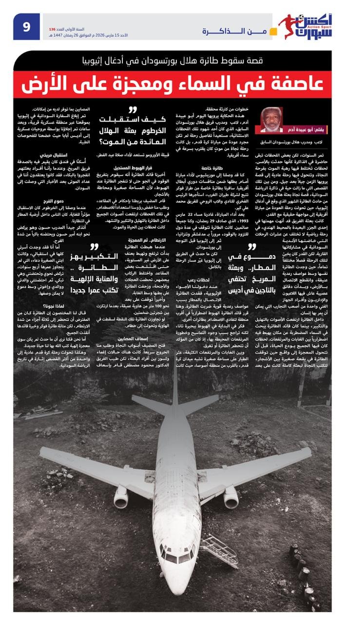تمر السنوات، لكن بعض اللحظات تبقى حاضرة في الذاكرة كأنها حدثت بالأمس. لحظات تختلط فيها رهبة الموت بفرحة النجاة، وتتحول فيها رحلة عادية إلى قصة يرويها الزمن جيلاً بعد جيل. ومن بين تلك القصص التي ما زالت حية في ذاكرة الرياضة السودانية، قصة نجاة بعثة هلال بورتسودان من حادث الطائرة الشهير الذي وقع في أدغال إثيوبيا، حين تحولت رحلة العودة من مباراة أفريقية إلى مواجهة حقيقية مع القدر.