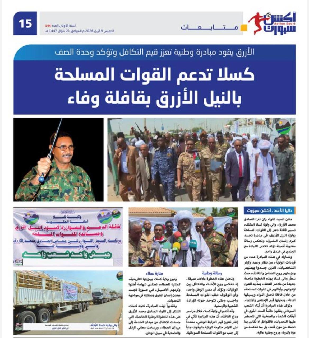 دشن السيد اللواء ركن (م) الصادق محمد الأزرق، والي ولاية كسلا المكلف، تسيير قافلة دعم إلى القوات المسلحة بولاية النيل الأزرق، في مبادرة تجسد كرم إنسان الشرق، وتعكس رسالة معنوية أصيلة تؤكد تلاحم القيادة مع الجندي في خندق واحد.