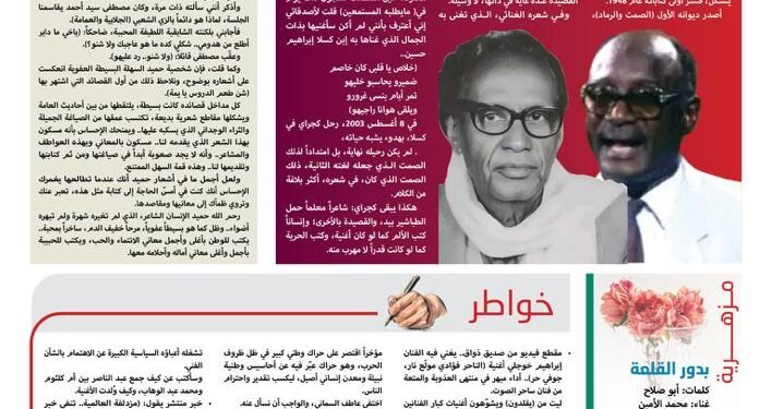 - تعرفت على حميد في لقاءات عابرة وجلسات معرفة عابرة، نسمع فيها بعضاً من أشعاره، وكان ذلك قبل أن تغمره الشهرة والأضواء.. ثم تعمقت معرفتي به أكثر رفقة فقيد الوطن والفن مصطفى سيد أحمد، له الرحمة والمغفرة والعتق من النار.. ووجدته كما هو: حميد البسيط العفوي.. المرح، خفيف الدم، الساخر بنعومة وبمحبة.