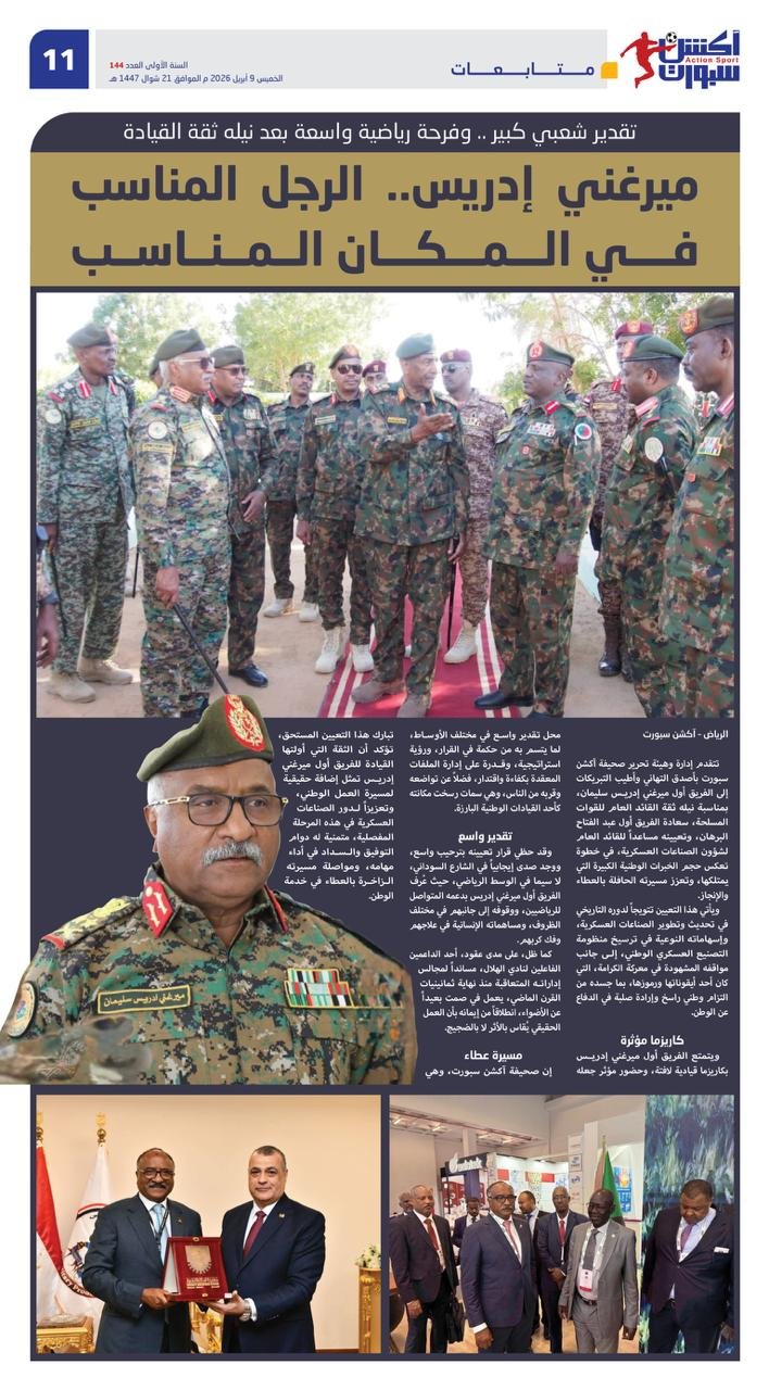 إن صحيفة آكشن سبورت، وهي تبارك هذا التعيين المستحق، تؤكد أن الثقة التي أولتها القيادة للفريق أول ميرغني إدريس تمثل إضافة حقيقية لمسيرة العمل الوطني، وتعزيزاً لدور الصناعات العسكرية في هذه المرحلة المفصلية، متمنية له دوام التوفيق والسداد في أداء مهامه، ومواصلة مسيرته الزاخرة بالعطاء في خدمة الوطن.