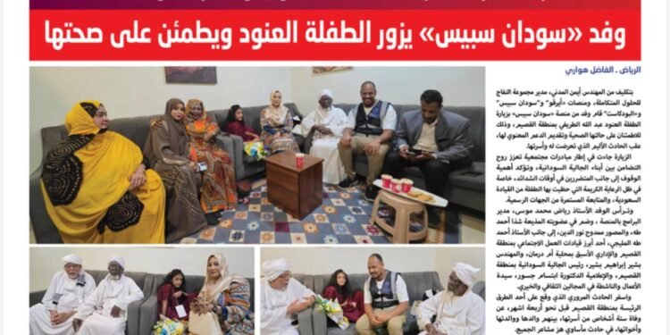 الزيارة جاءت في إطار مبادرات مجتمعية تعزز روح التضامن بين أبناء الجالية السودانية، وتؤكد أهمية الوقوف إلى جانب المتضررين في أوقات الشدائد، خاصة في ظل الرعاية الكريمة التي حظيت بها الطفلة من القيادة السعودية، والمتابعة المستمرة من الجهات الرسمية.